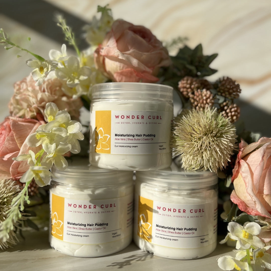 Indulge in the perfect blend of aloe vera, shea butter, and castor oil to unlock the secret to soft, hydrated curls that last for days. Our unique formula is designed to nourish and condition your hair, while enhancing your natural curls and increasing elasticity. Say goodbye to breakages and hello to length retention as this one-and-done wonder works its magic on your tresses. Suitable for all hair types, from 3B to 4C, our Moisturizing Hair Pudding is here to make your curls bounce with joy. Embrace the power of moisture today!